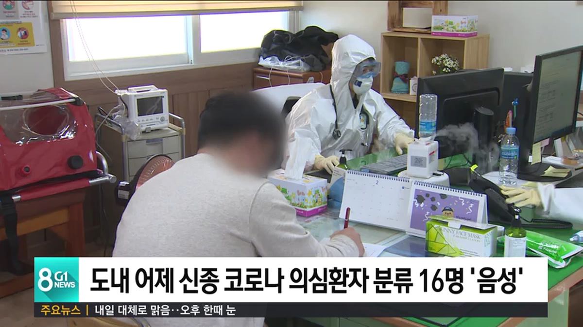 도내 신종 코로나 바이러스 의심환자 16명 '음성'..3