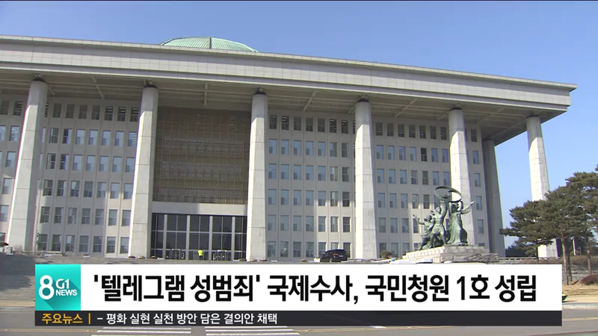 인터넷 모바일 메신저 프로그램인 텔레그램에서 발생하는 디지털성범죄 해결에 관한 청원이 국회 국민동의청원 1호로 성립됐습니다.