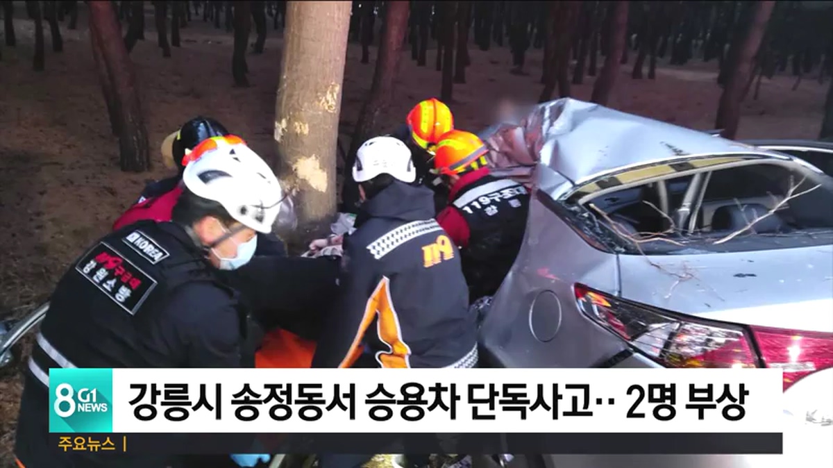 강릉시 송정동서 승용차 단독사고..2명 부상