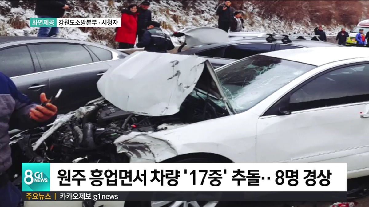 원주 흥업면서 눈길에 '17중' 추돌..8명 경상