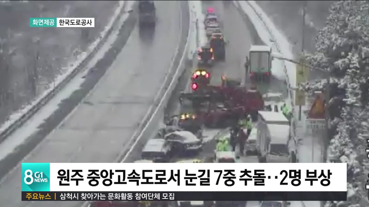 원주 중앙고속도로서 눈길 7중 추돌..2명 부상
