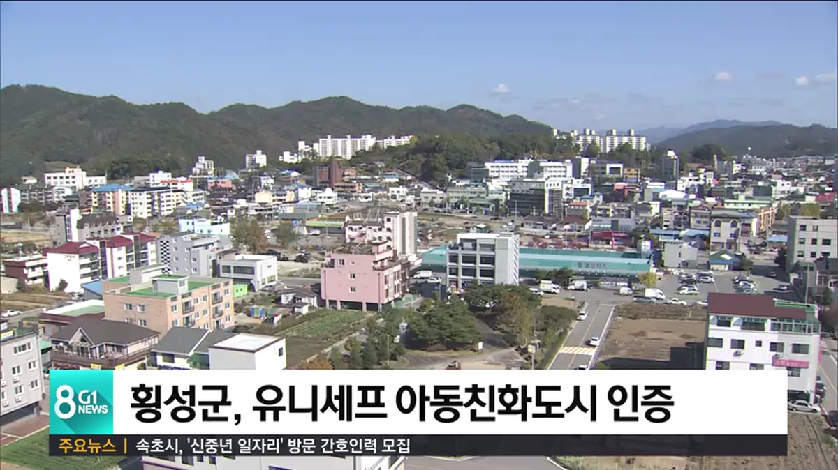 횡성군이 전국 군단위 자치단체에서는 3번째로 유니세프 한국위원회로부터 아동친화도시 인증을 받았습니다.