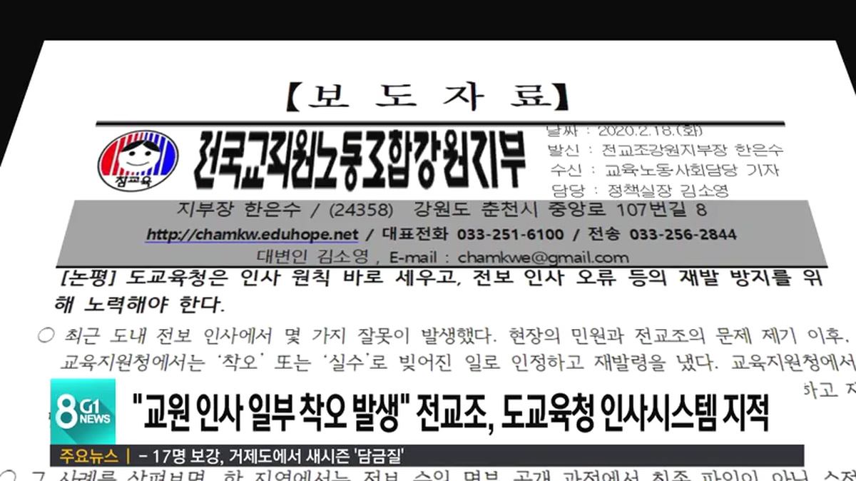 전교조는 "담당 교사의 문제제기가 없었다면 잘못을 바로잡기 어려웠을 것"이라며, 강원도교육청이 인사 시스템을 바로 잡아야한다고 주장했습니다.
