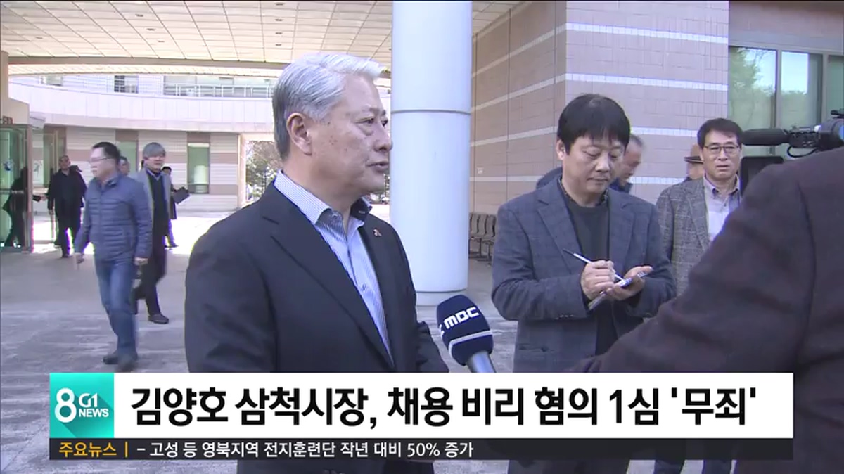 삼척시가 출자한 골프장에 지인의 아들을 채용하도록 압력을 행사한 혐의로 재판에 넘겨진 김양호 시장에게 1심 법원이 무죄를 선고했습니다.