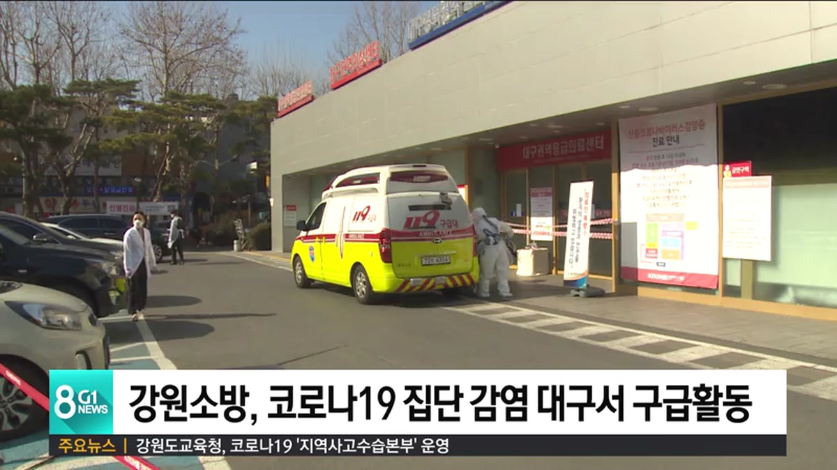 강원도소방본부는 응급 구조 자격이 있는 구급 대원 13명과, 구급차 6대가 이번 주말과 휴일 대구 지역에 투입돼 이송 업무 30여건을 수행했다고 밝혔습니다.