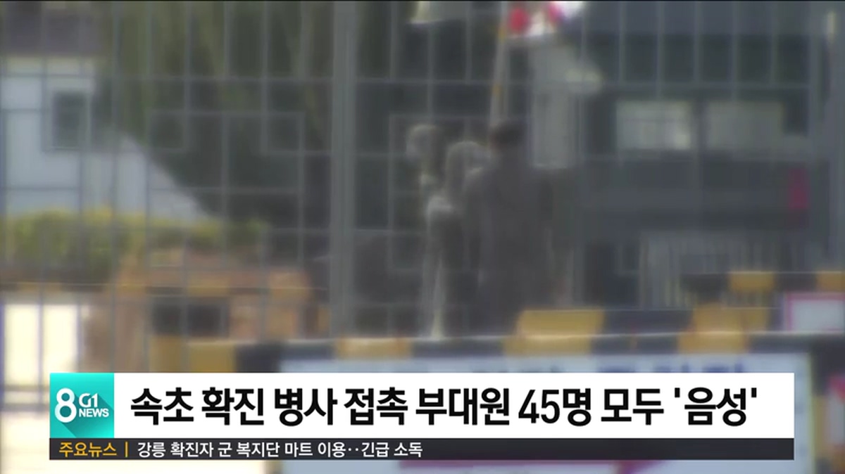 속초 코로나19 확진자인 상근예비역과 접촉한 부대원 45명이 모두 음성 판정을 받았습니다.