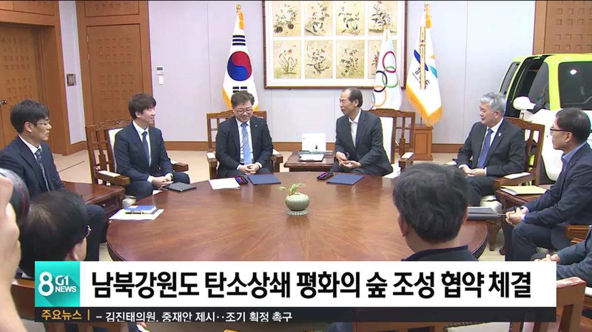 강원도와 한국동서발전은 오늘 강원도청에서 '남북 강원도 탄소상쇄 평화의 숲 조성'을 위한 업무 협약을 체결했습니다.