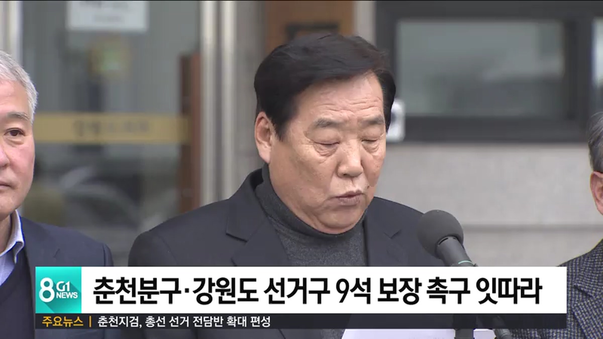 강원도의 정치적 피해와 소외라는 악순환을 막기 위해서라도 이번 총선에서 춘천 분구와 강원도 의석 9석이 확보돼야 한다는 도내 정치권과 경제.사회단체들의 촉구 성명이 이어지고 있습니다.