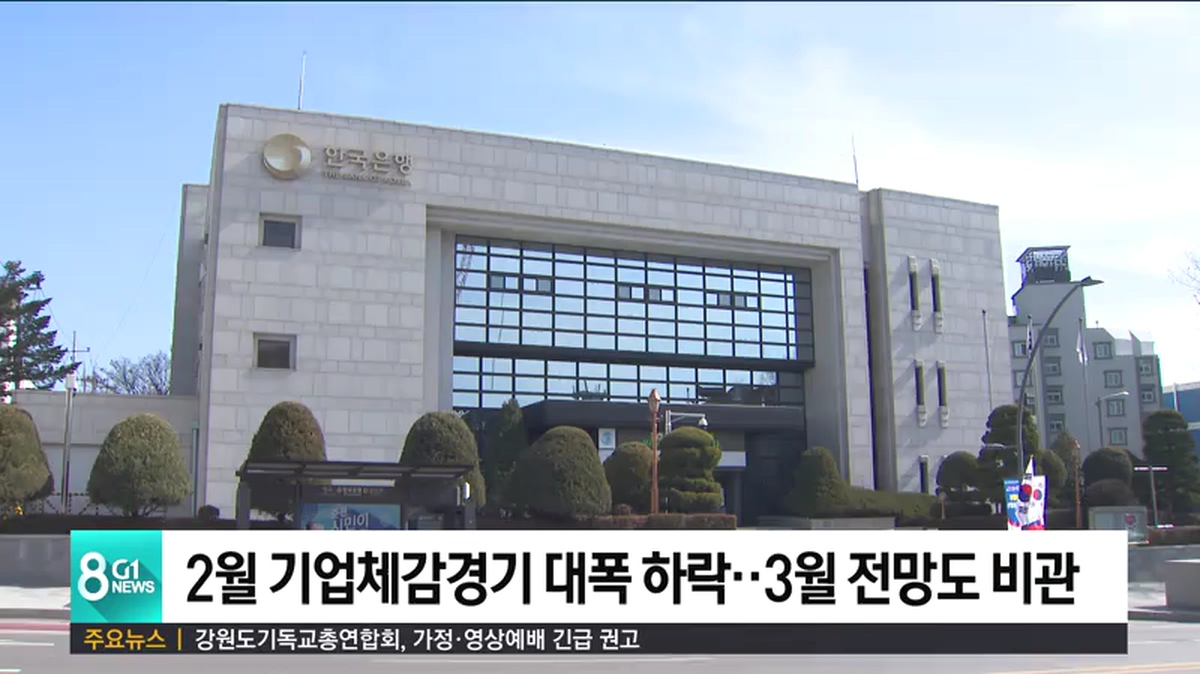 2월 기업체감경기 대폭 하락..3월 전망도 비관