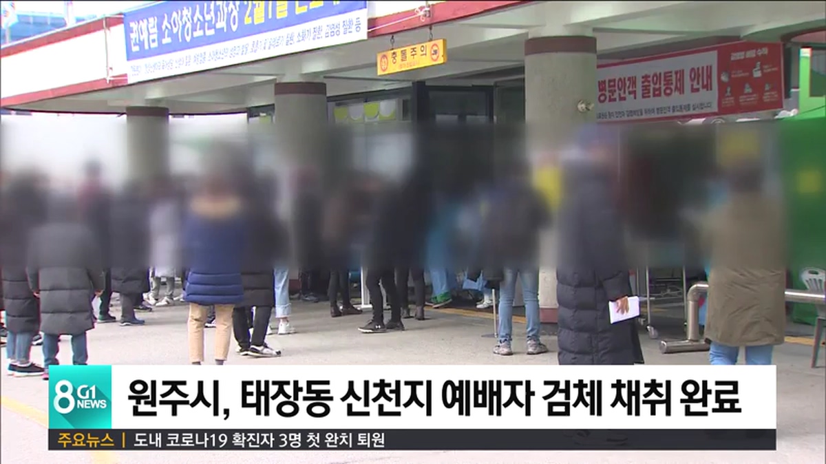 원주지역 코로나19 확산의 거점으로 지목되고 있는 지난달 16일 태장동 신천지 교육회관 예배에 참석했던 교인 345명에 대한 검체 채취가 모두 마무리됐습니다.
