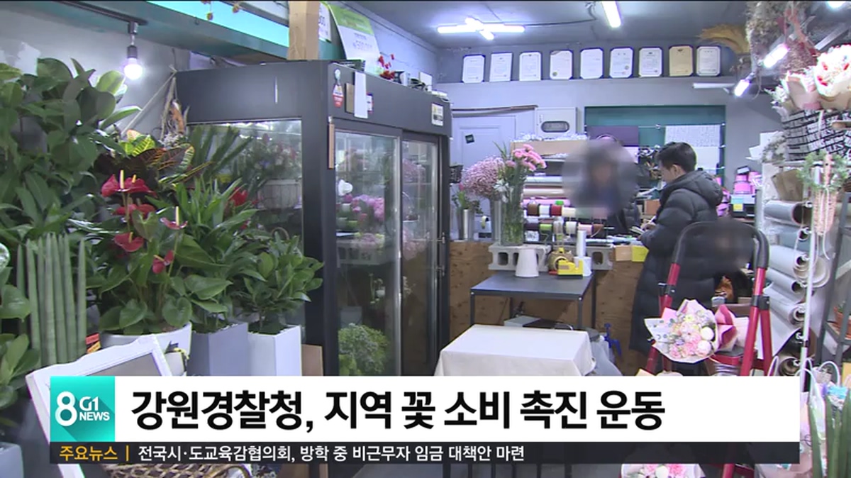 강원지방경찰청은 경찰관 승진 임용 축하 행사에 지역 화원에서 구입한 꽃다발을 사용하고, 지방청과 일선 경찰서 사무실에도 화분 놓기 운동을 벌이기로 했습니다.