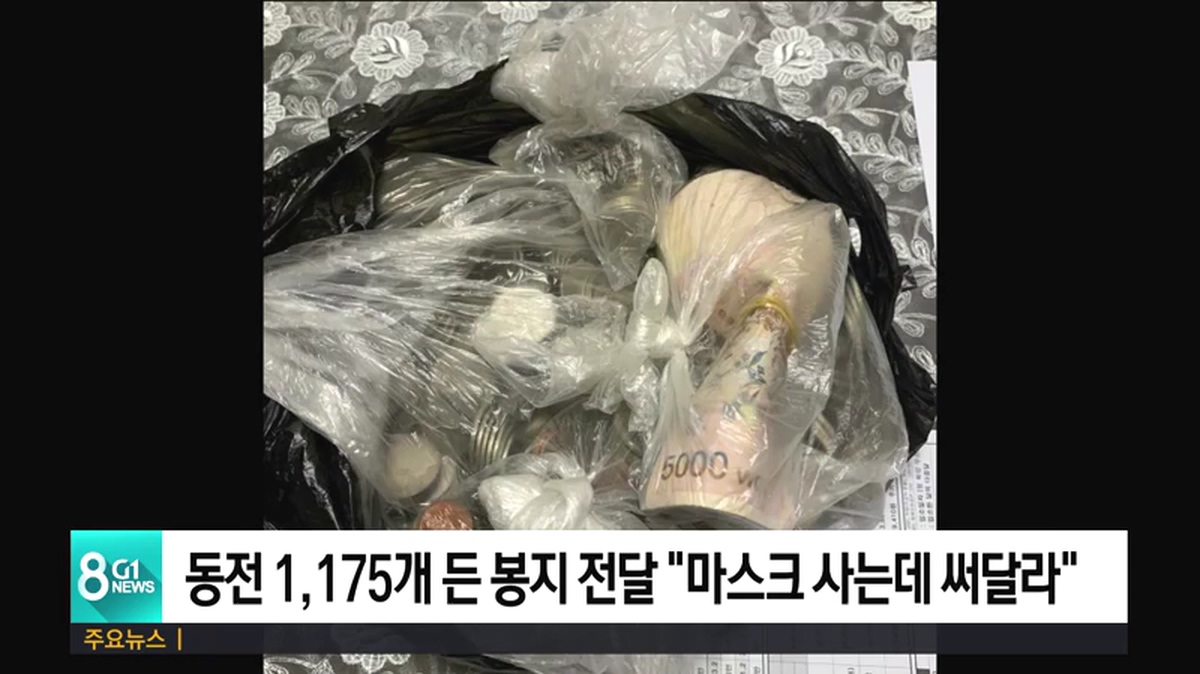 동전 1,175개 든 봉지 전달 "마스크 사는데 써달라"