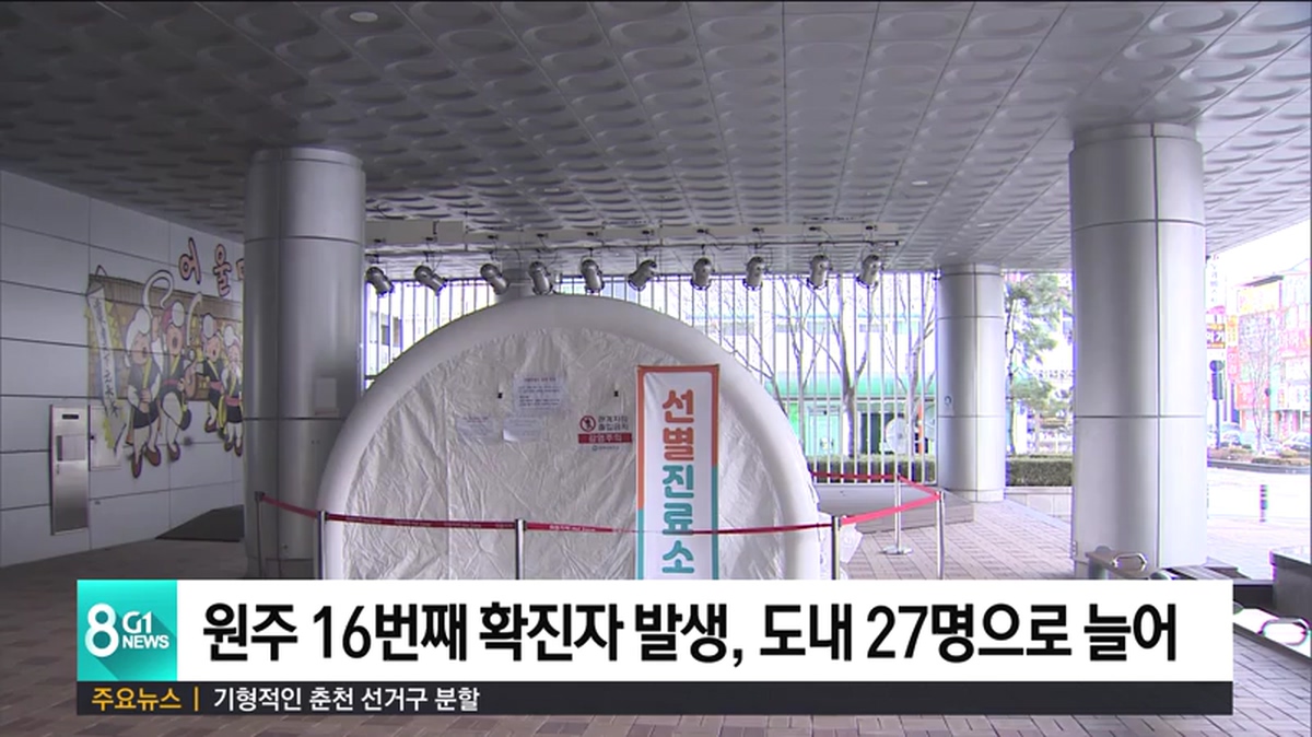 원주 16번째 확진자 발생, 도내 27명으로 늘어
