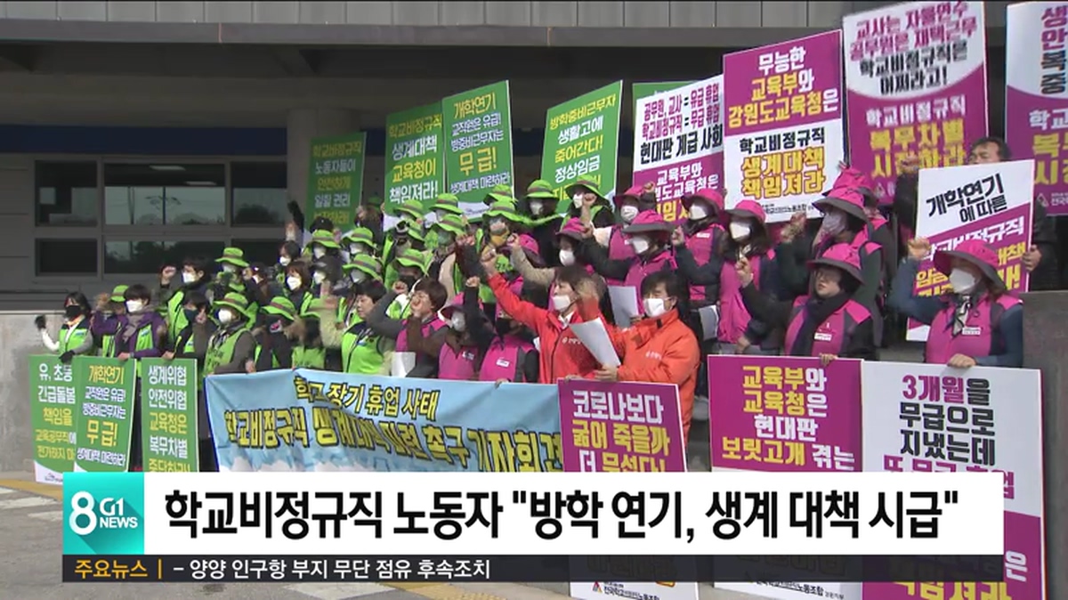 코로나19 여파로 방학이 연장되면서 학기 중에만 일을하는 학교 비정규직 노동자에 대한 생계 대책이 시급하다는 목소리가 나왔습니다.