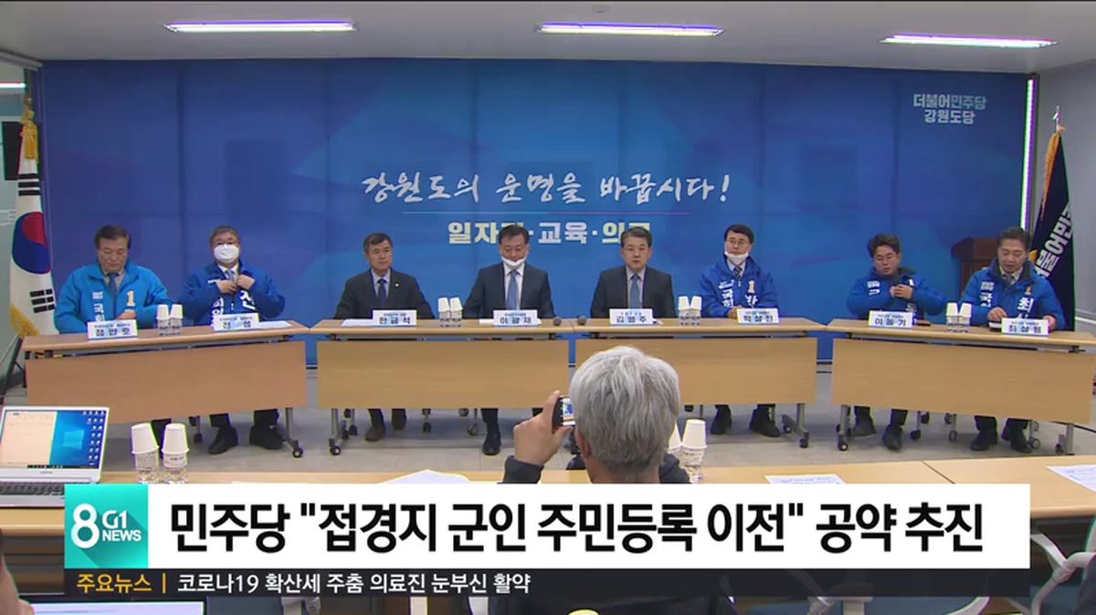 더불어민주당 총선 후보들이 강원도 차원의 대표 공약으로 '접경지역 군인 주민등록 이전'을 발표하고 추진 계획을 내놨습니다.