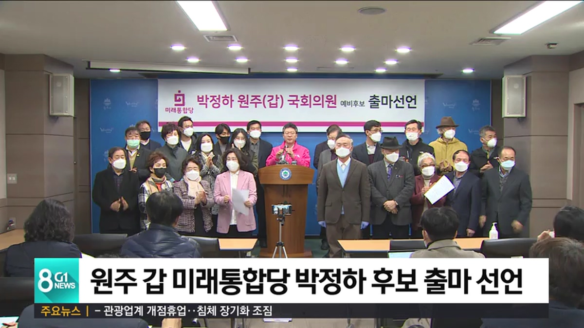 미래통합당 원주 갑 선거구 공천을 받은 박정하 전 제주도 정무부지사가 오늘 출마 기자회견을 열고, 본격적인 선거운동에 돌입했습니다.