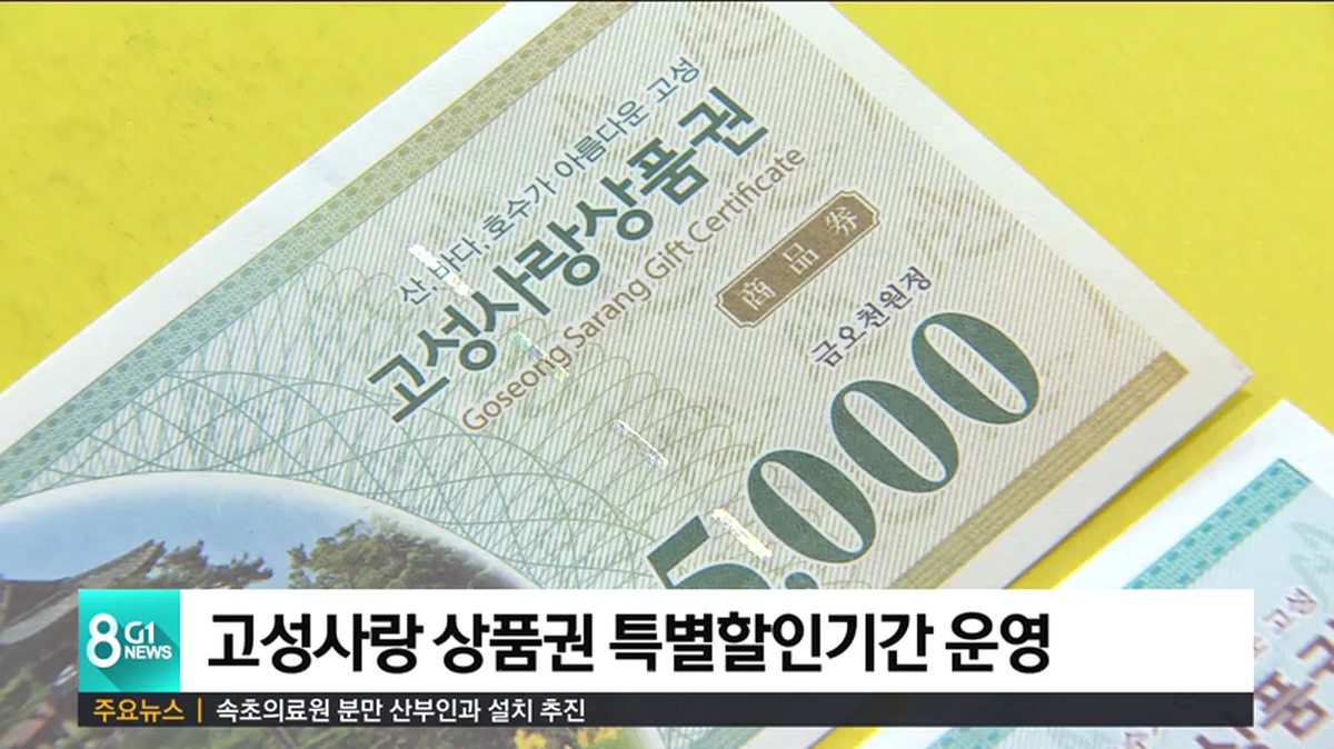 고성군은 오는 6월 말까지 고성사랑 상품권의 할인률을 기존 3%에서 10%로 올리기로 했다고 밝혔습니다.