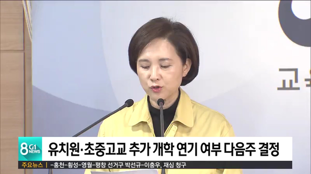 교육부가 전국 유치원과 초중고교의 추가 개학 연기 여부를 다음 주 중에 발표할 전망입니다.