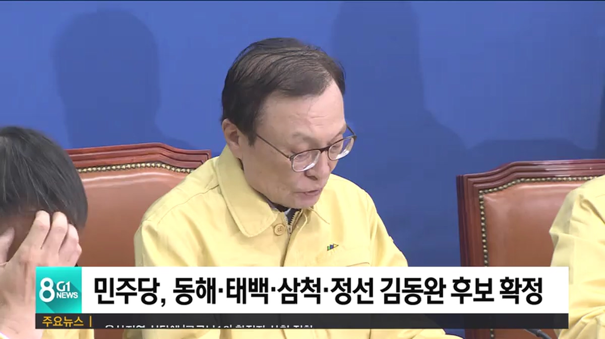 당초 동해-태백-삼척-정선 선거구는 선거구 조정에 따라 재경선이 예정됐지만, 김명기 후보의 불출마 선언으로 김동완 후보가 단수 공천됐습니다.