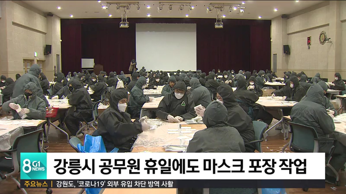 강릉시 공무원들이 휴일도 반납하고 일반 시민 들에게 나눠줄 마스크 포장 작업을 진행했습니다.