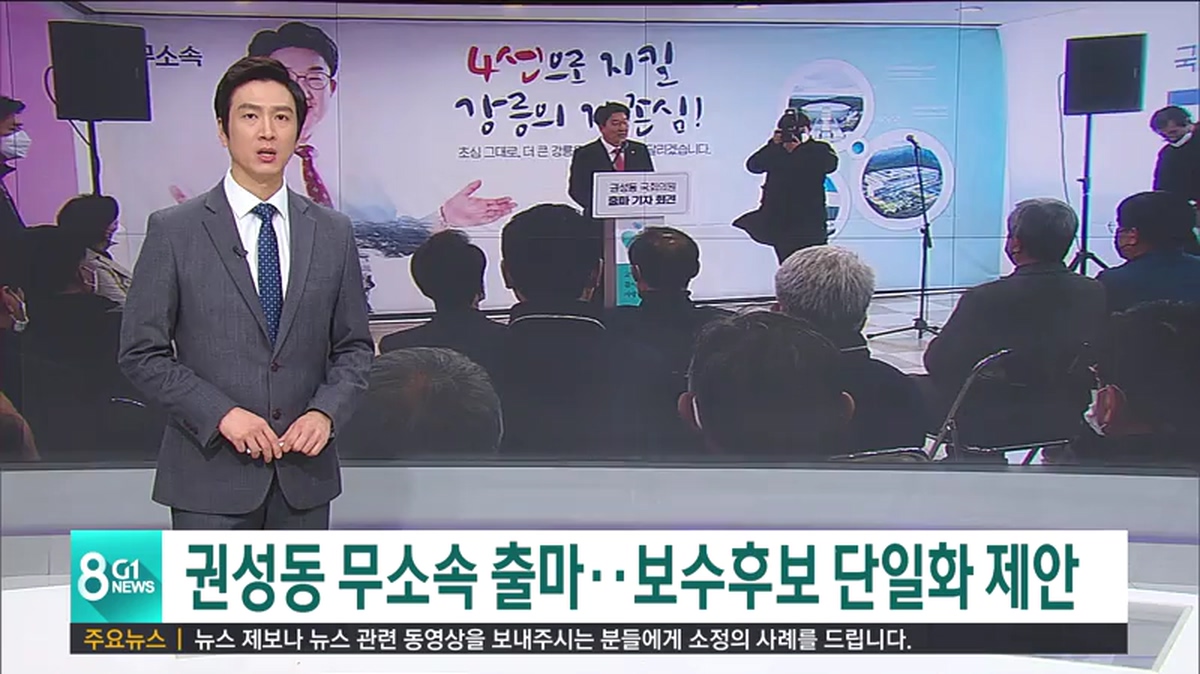 권성동 의원은 이에 반발해, 무소속 출마와 함께, 보수 분열을 막기 위한 보수후보 단일화를 전격 제안했습니다.