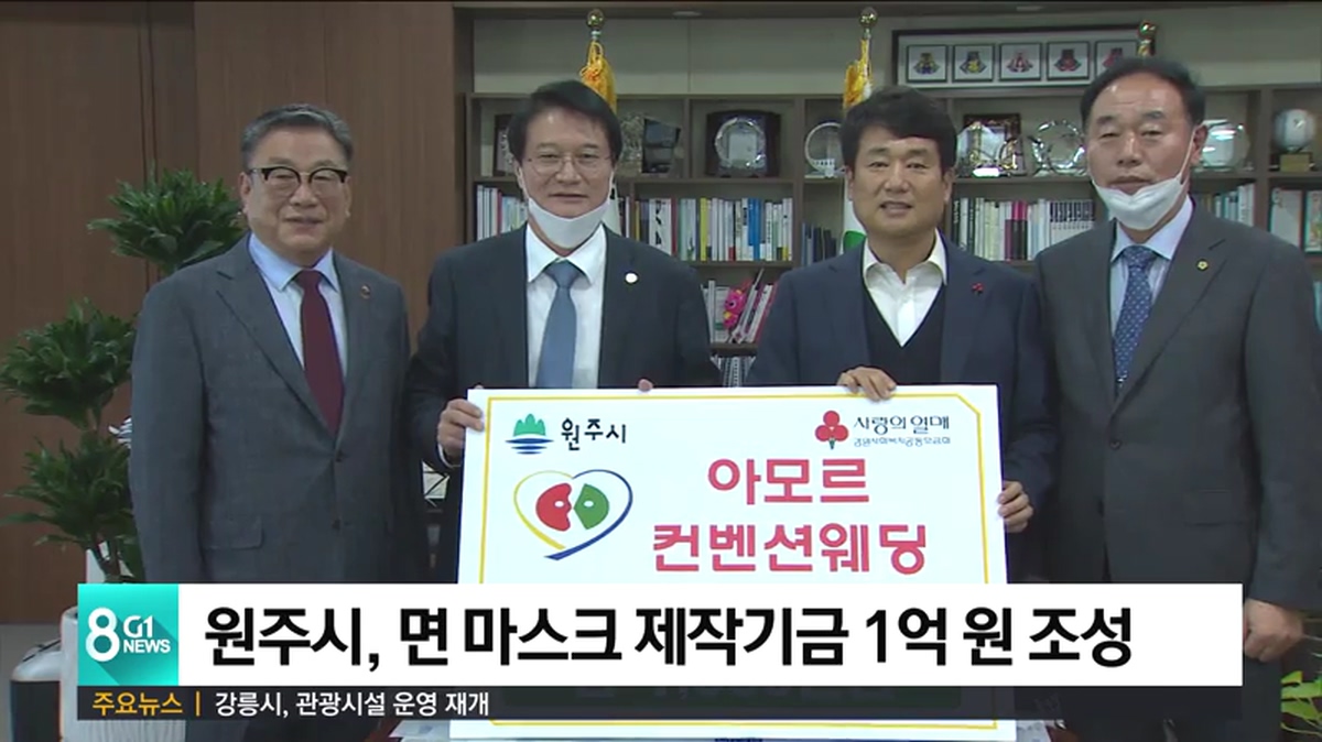 원주시가 면 마스크 5만장을 지역 취약계층에게 지급하기 위해 추진한 '마스크 제작기금 1억원 조성'이 목표를 달성했습니다.