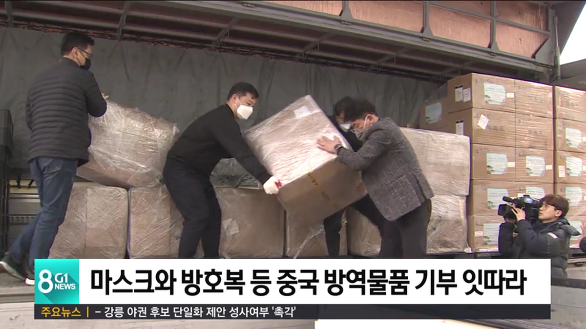 코로나19와 관련해 강원도와 교류 협력을 이어오고 있는 중국내 도시와 기업들의 방역물품 기부가 이어지고 있습니다.