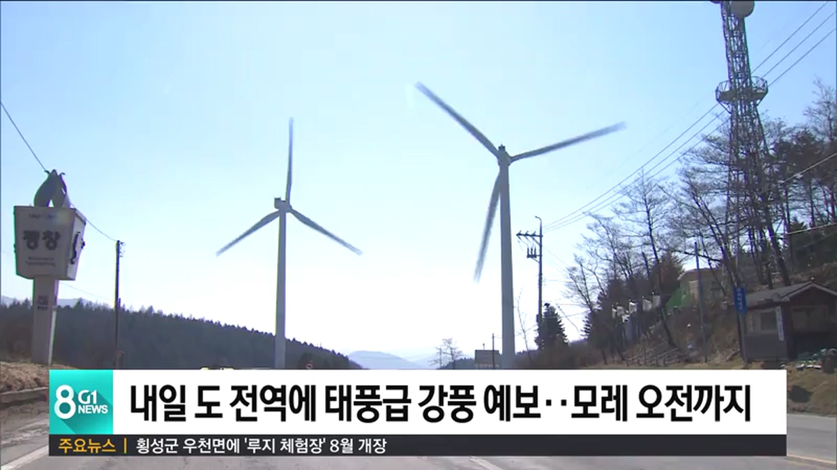 내일 강원도 전역에 최대순간풍속 시속 126km 달하는 태풍급 강풍이 예보됐습니다.