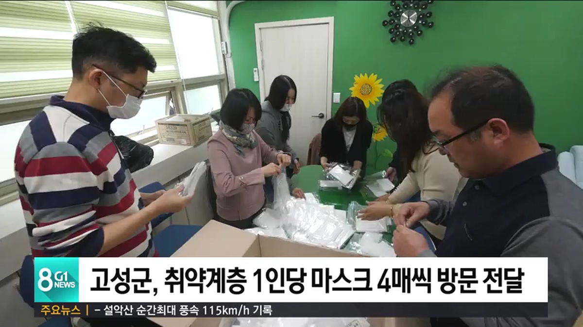고성군, 취약계층 1인당 마스크 4매씩 방문 전달
