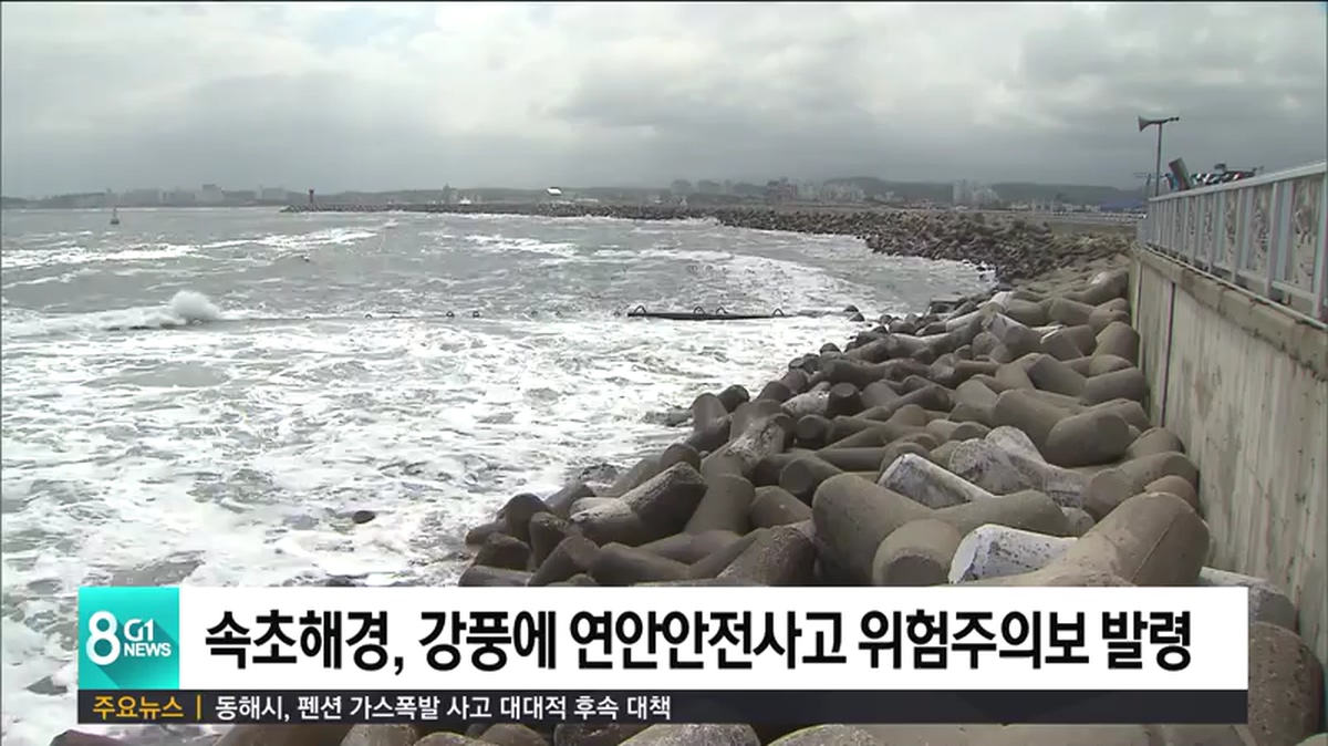 속초해양경찰서가 동해안에 강풍 경보가 내려지면서, 연안안전사고 위험예보를 '관심'에서 '주의보' 단계로 격상했습니다.