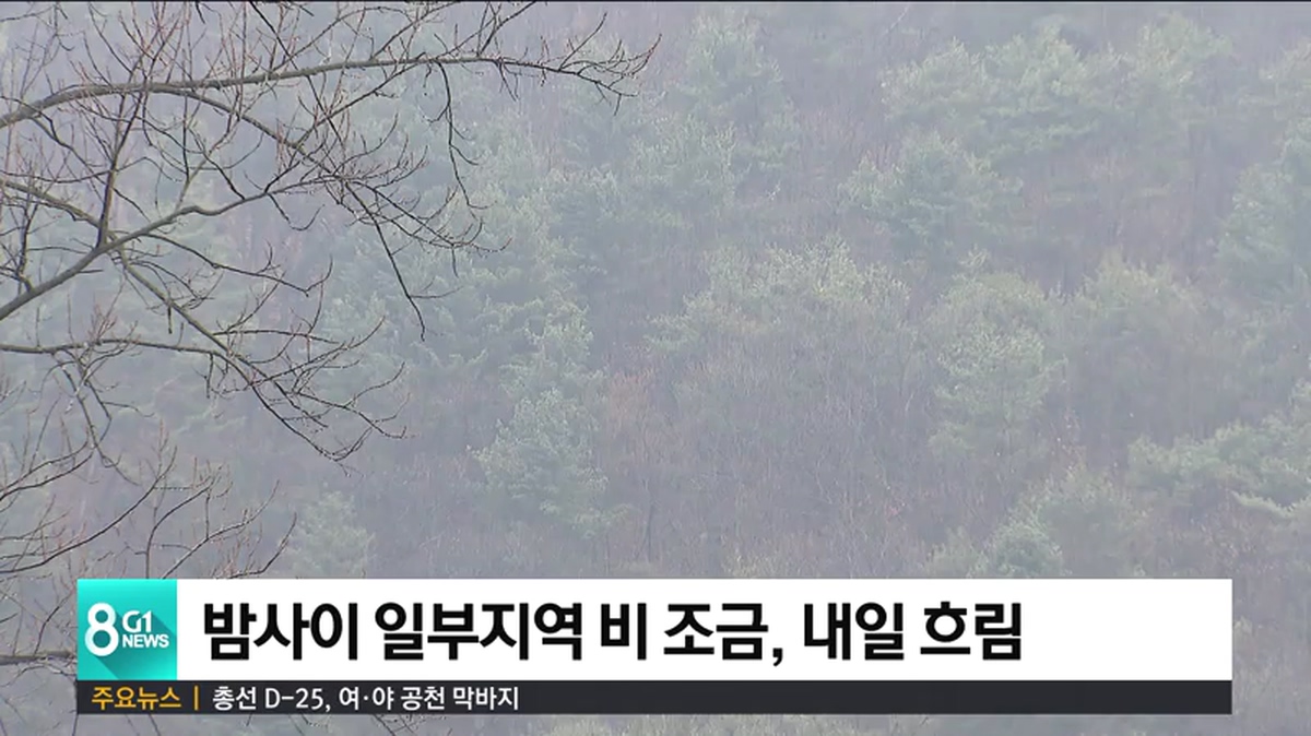 강원도는 오늘 밤사이 남부지역을 중심으로 비가 내리는 곳이 있겠습니다.