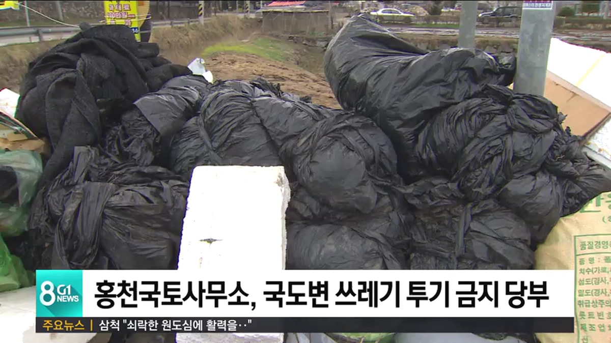 홍천국토관리사무소는 도로보수원들의 안전과 처리비용 절감을 위해 국도변 쓰레기 투기를 금지해줄 것을 당부했습니다.