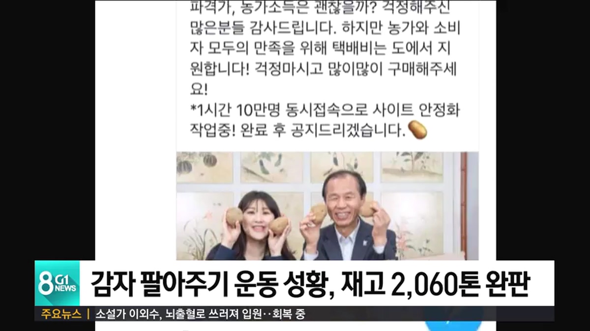 판로를 찾지못해 쌓여있는 강원도산 감자 소비 촉진을 위해 강원도가 벌인 SNS 마케팅이 재고 물량을 모두 소진하며 성황리에 마감됐습니다.