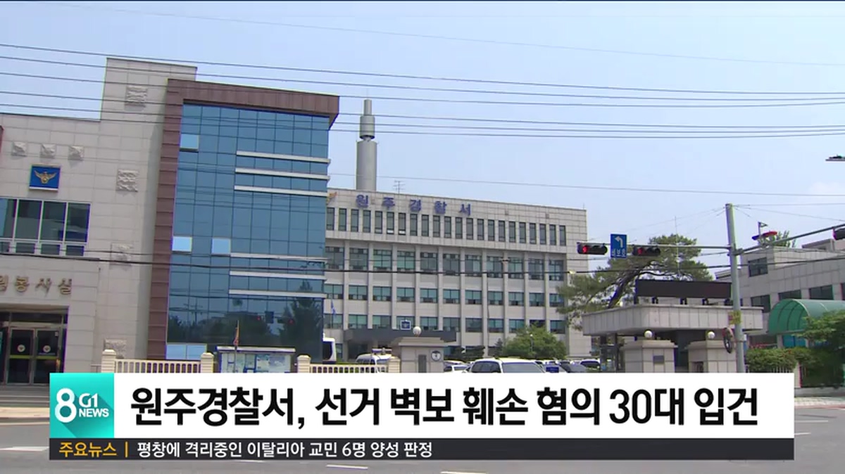 원주경찰서, 선거 벽보 훼손 혐의 30대 입건