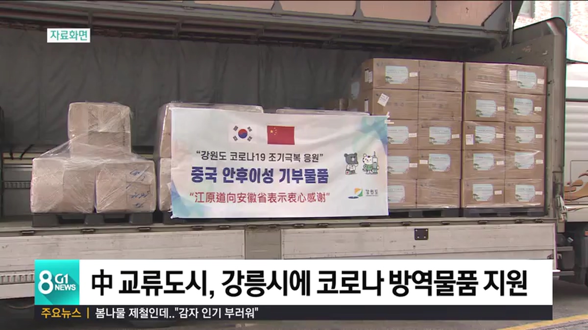 이번 지원은 지난 2월, 강릉시가 중국어로 된 코로나19 극복 응원 의사를 담은 동영상과 특산품을 전한 것에 대한 보답이라고 강릉시는 설명했습니다.