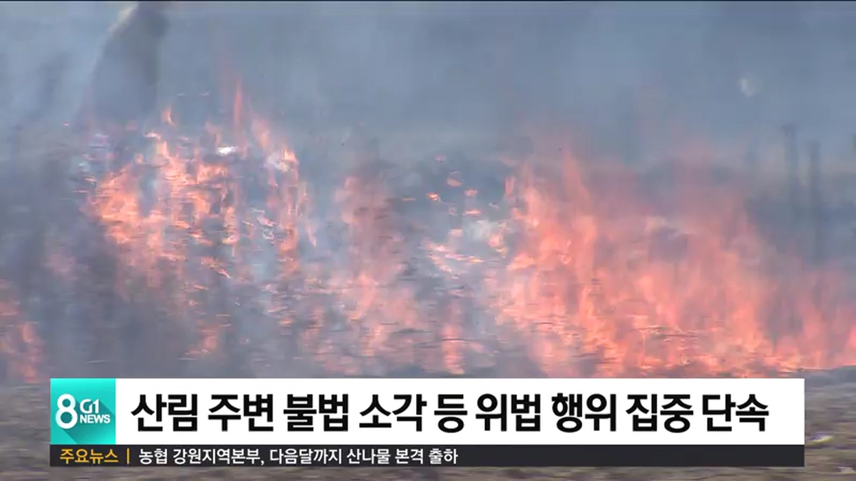 최근 건조한 날씨가 계속지면서 도내 곳곳에서 산불이 잇따르자 강원도가 불법 소각 등 산불 관련 위법 행위에 대한 집중 단속에 들어갑니다.