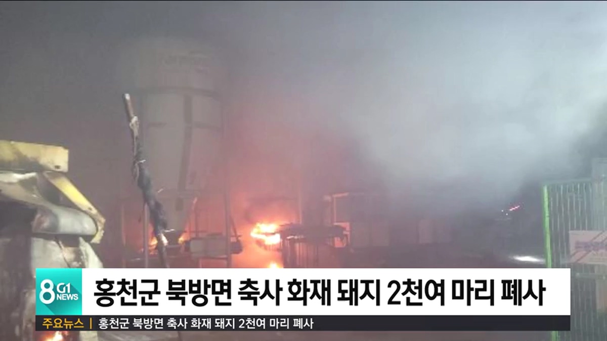 이 불로 돼지 2천여 마리가 집단 폐사했습니다.