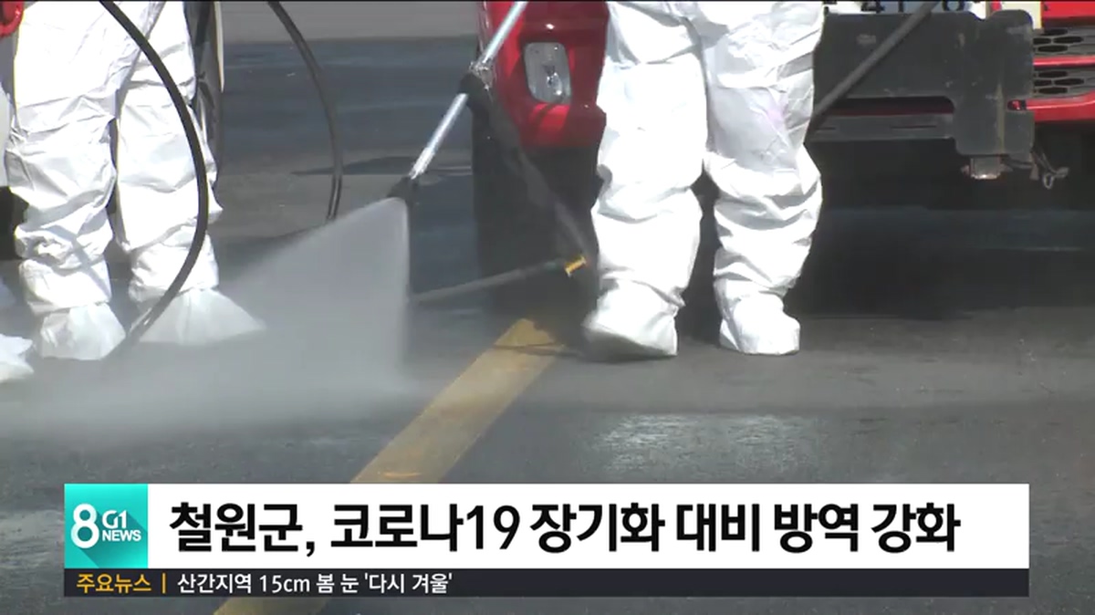 철원군은 보건소와 읍면 행정복지센터, 군부대 등에 14개반 22명으로 구성된 방역반을 투입해, 확진자 주택과 다중이용시설을 중심으로 코로나 사태가 안정화 될 때까지 방역 소독을 벌이기로 했습니다.