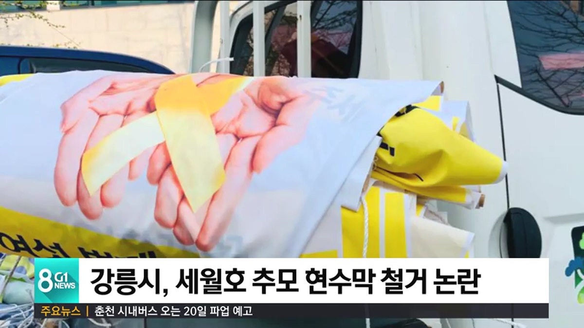 강릉시는 강릉추모위원회가 사전에 공문을 보내 양해를 구했지만, 법적으로는 불법인데다 민원이 계속 제기돼 철거했다면서 떼 낸 현수막은 추모위원회에 돌려줬다고 밝혔습니다.