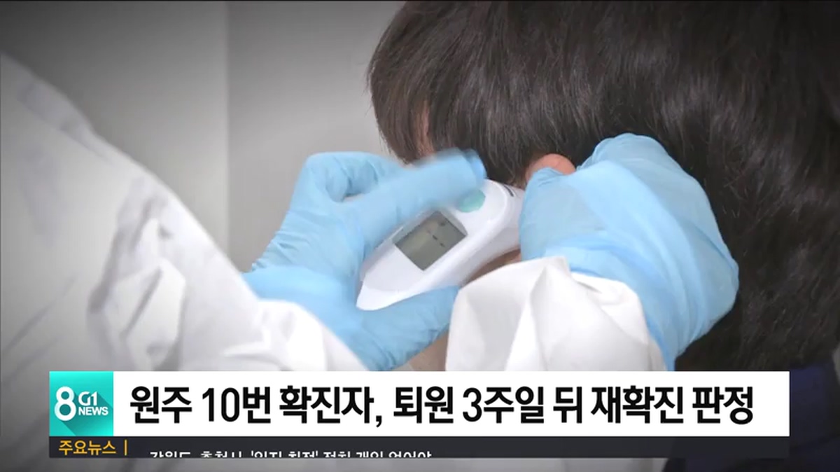 원주 10번 확진자, 퇴원 3주일 뒤 재확진 판정