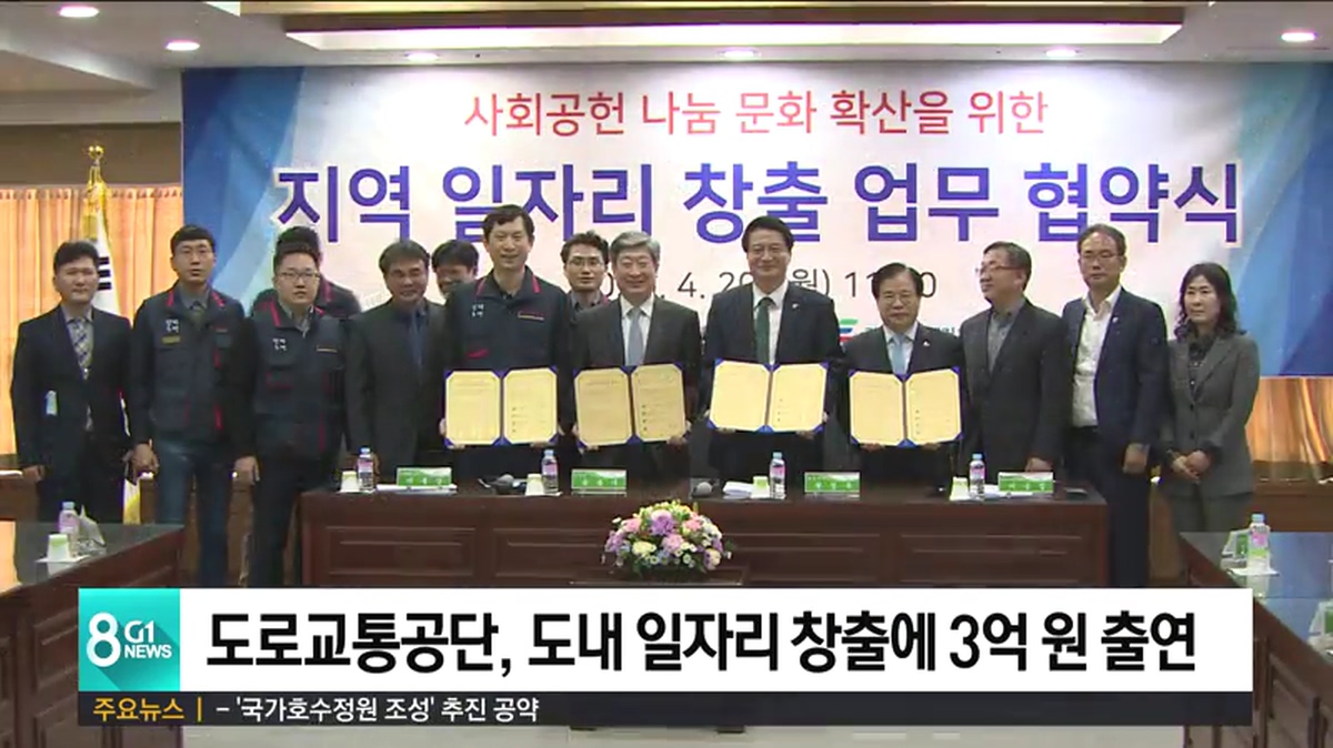 원주시와 도로교통공단은 오늘 원주시청에서 지역 일자리 창출 업무 협약을 갖고, 도로교통공단 노사 공동으로 3억 원을 출연했습니다.
