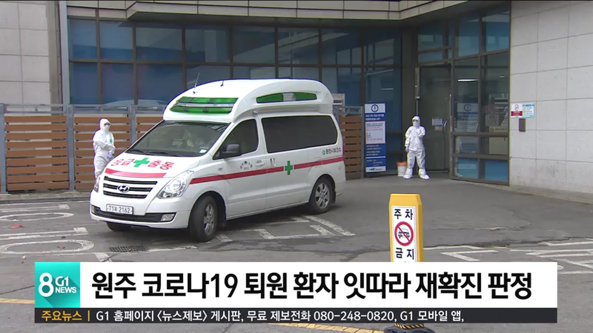 원주에서 코로나19 치료를 받고 퇴원한 환자2명이 잇따라 재확진 판정을 받았습니다.