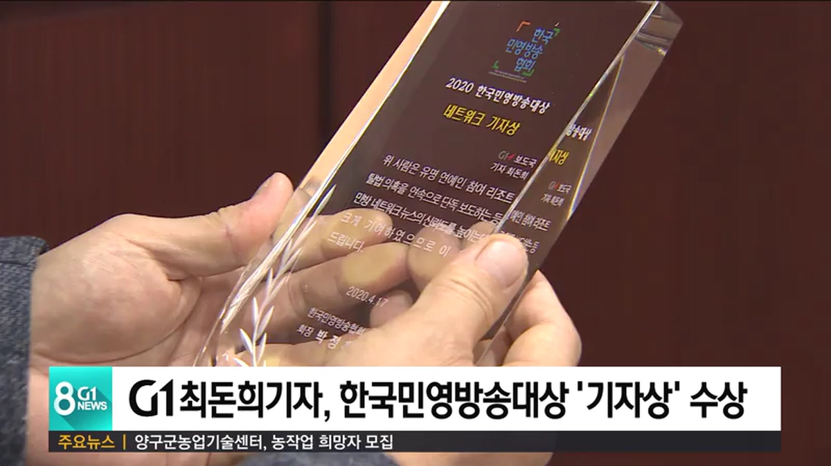 전국 민영 지상파 방송사가 주관하는 2020 한국민영방송 대상에서 G1강원민방 최돈희 기자가 네트워크 기자상을 수상했습니다.