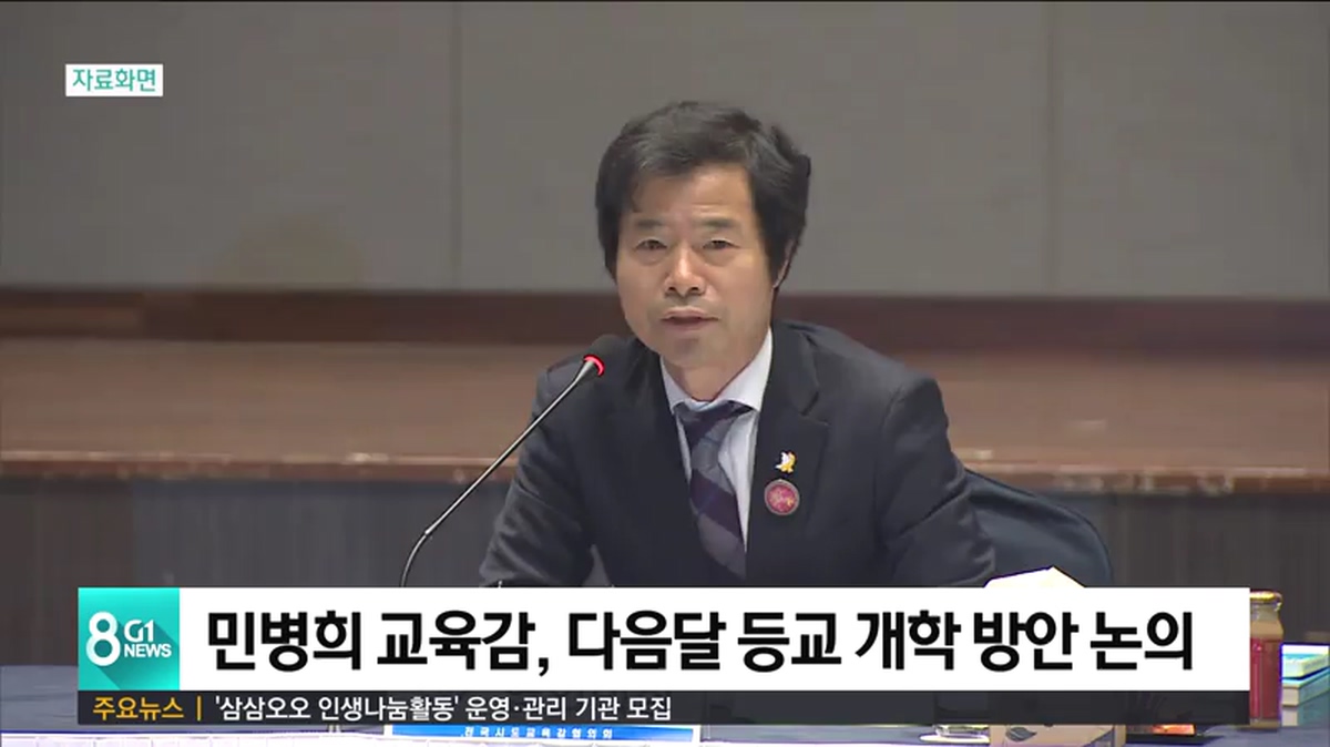 교육부가 민병희 도교육감을 비롯한 전국 시도교육감과 영상 회의를 통해 다음달 등교 개학 방안을 논의했습니다.