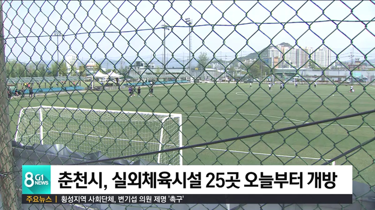 춘천시는 오늘부터 종합경기장과 인조 잔디구장, 실외 테니스장 등 지역 내 25개 실외체육시설을 개방한다고 밝혔습니다.