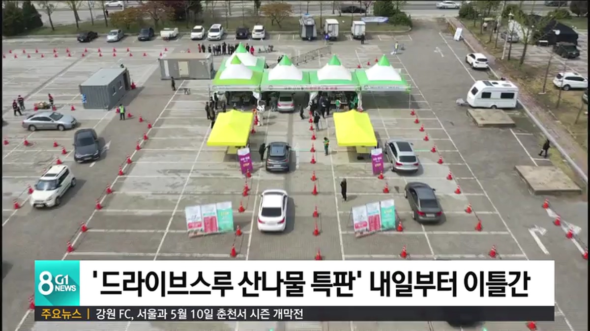강원도는 내일(2일)부터 이틀간 춘천 베어스호텔 주차장에서 곰취와 어수리, 눈개승마 등 강원도산 산나물을 '드라이브스루' 방식으로 판매한다고 밝혔습니다.