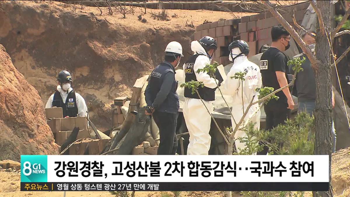 지난 1일 발생한 고성산불의 발화 원인을 규명하기 위한 경찰의 2차 합동 감식이 오늘(7일) 실시됐습니다.