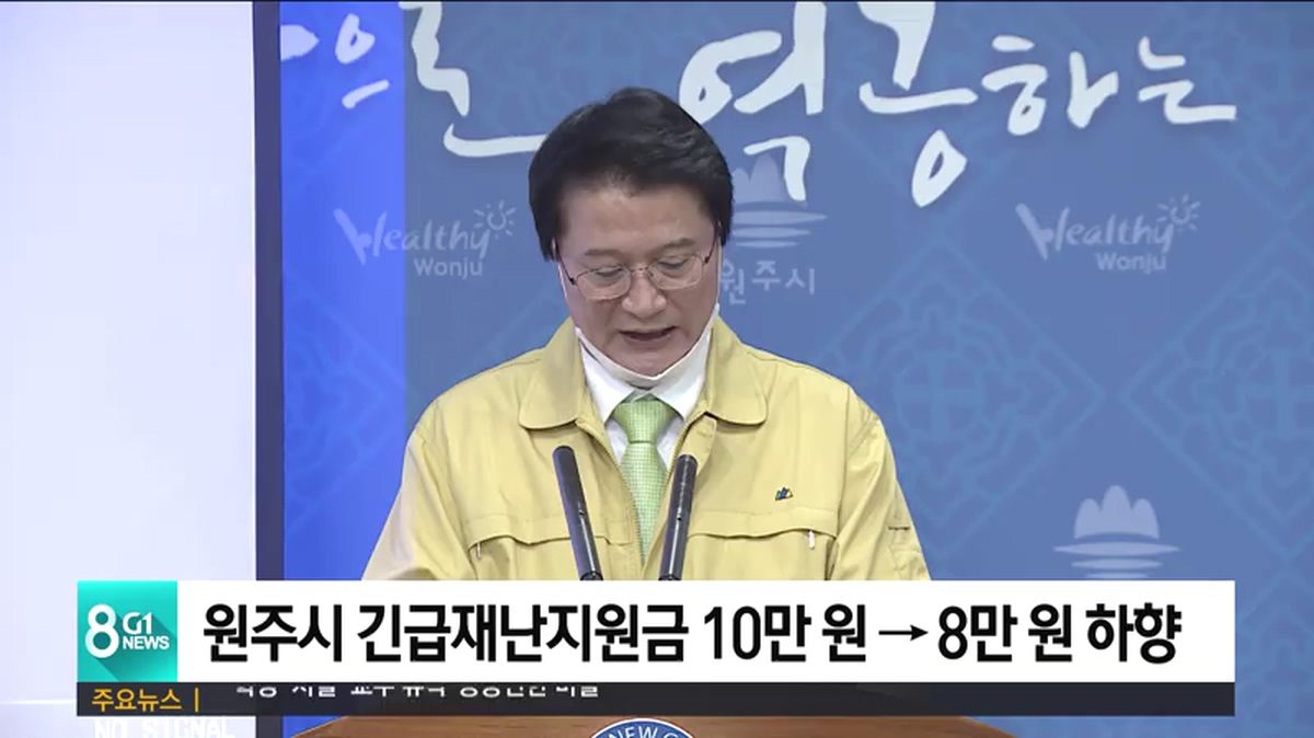 원주시가 당초 시민 1인당 10만 원씩 지급하기로 했던 긴급재난지원금을 8만원으로 변경하기로 했습니다.