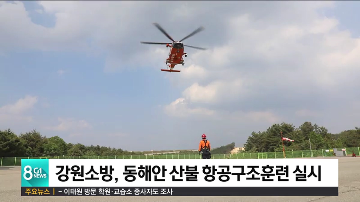 강원도소방본부가 동해안 산불과 설악산 산악 사고에 대응하기 위해 양양 제2항공대에서 항공 구조 훈련을 실시했습니다.