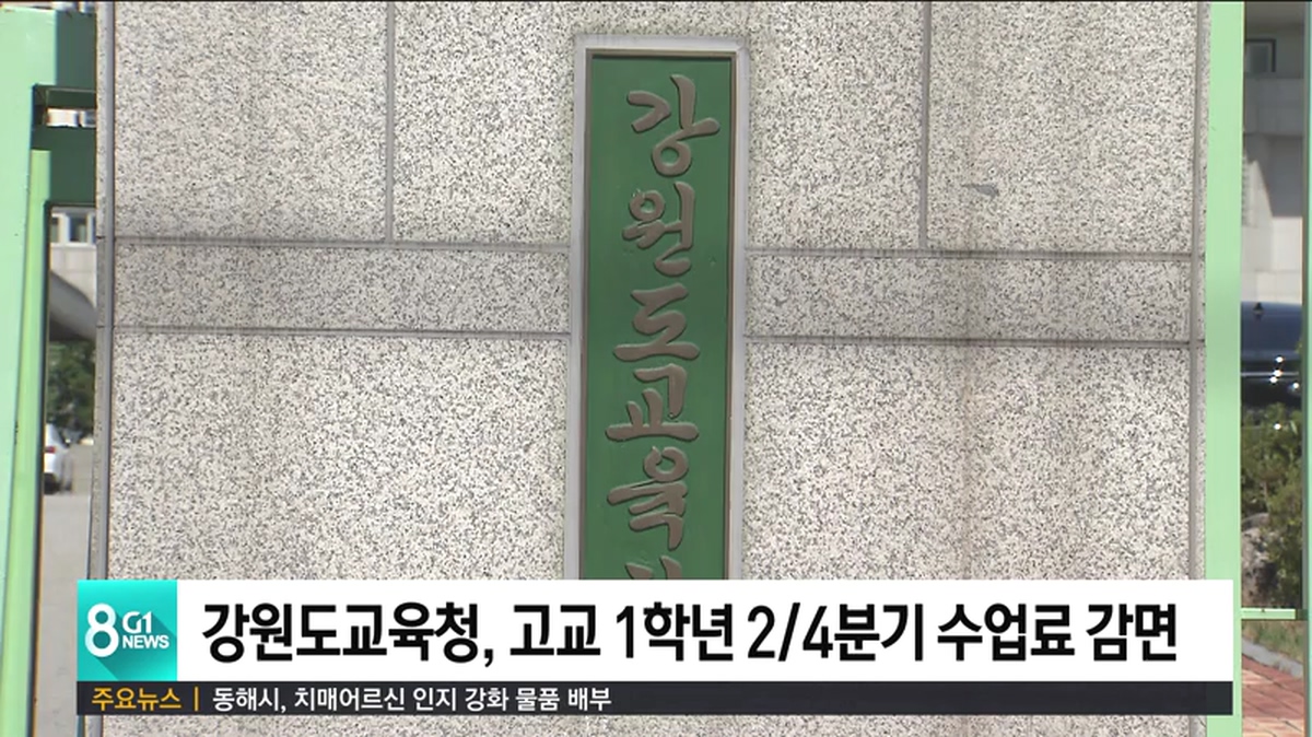강원도교육청은 코로나19로 등교 수업이 중단된 가운데 올해 무상 교육에서 제외된 고등학교 1학년 학생에 대한 2/4분기 수업료와 운영 지원비를 감면한다고 밝혔습니다.